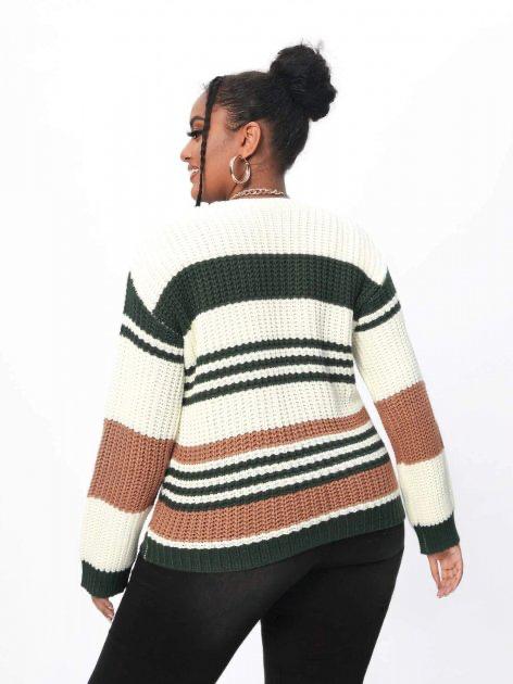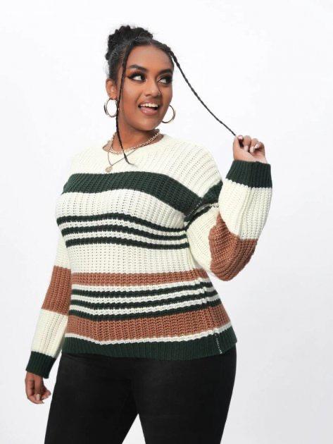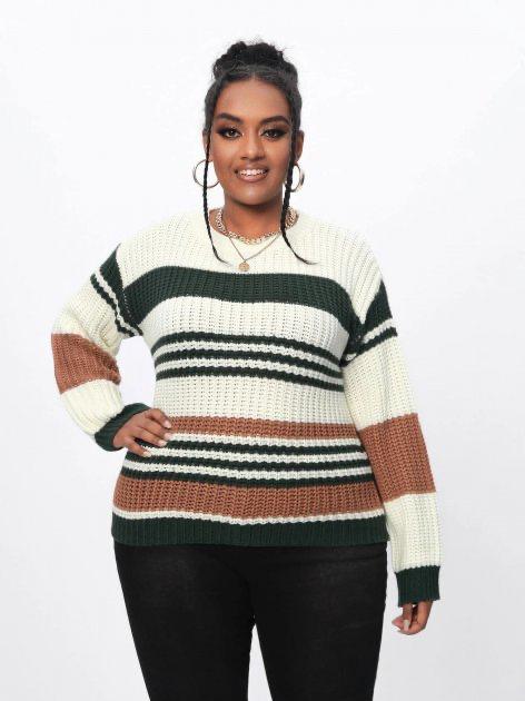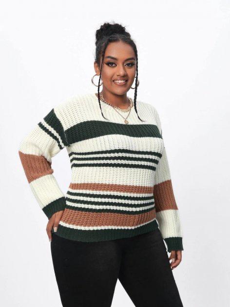 SHEIN Plus Solid Off The Shoulder Fringe Open Knit Sweater